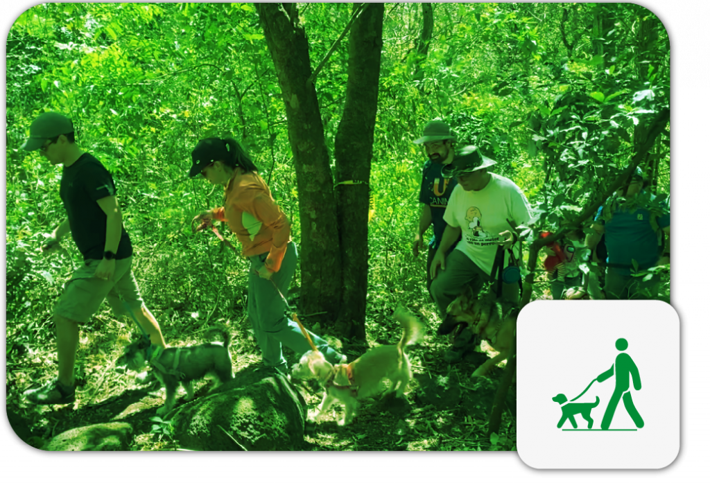 Capacitación para la familia: enseñar al perro a acudir al llamado y manejarlo adecuadamente mediante rutinas, límites y consejos de comportamiento (agresiviad, reactivdad, ansiedad, manejo de heces y orina, ladridos excesivos, destrucción, fobias o miedos, entre otros).